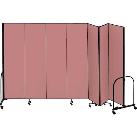 Portable Room Divider, Number of Panels 7, Panel Height 6 ft 8 in, Panel Width 13 ft 1 in, Overall Height 6 ft 8 in, Overall Width 13 ft 1 in, Panel Thickness 3/4 in, Color Rose, Sound Absorbing Acoustical Panels with Black Painted Metal Trim Construction, Fully Assembled, Features Full Length Aluminum Piano Hinges and Self Leveling, Nonmarking Casters