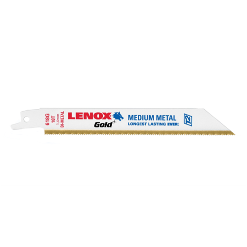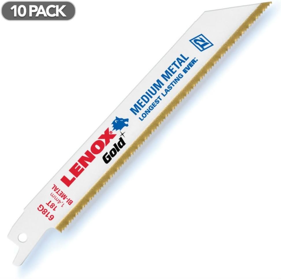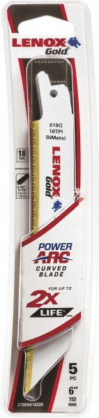 LENOX Tools 21069618GR Gold Power Arc Reciprocating Saw Blade, For Medium Metal, Sheet Metal Cutting, 6-inch, 18 TPI, 5-Pack