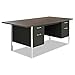 Durable square edge laminate top is durable and stain resistant. Powder coated steel frame with chrome plated 1" square, tubular steel legs. Telescopic file drawer lock with ball bearings accommodates hanging file folders. Box Drawer with dividers Operates on steel roller suspensions. Center Drawer Lock secures all drawers. Aluminum drawer handles. Three-Quarter Height Modesty panel provides privacy. Leveling Glides adjust for uneven floors. Color: Walnut/Black; pedestal Count: 2; Rectangular shape; Upper material: laminated upper stripes.