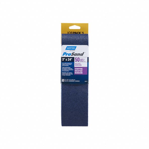 <p><strong>Norton, 7660749271, Portable Belts - Job Packs, 3in x 24in, P50, Coarse</strong></p><p>Next generation Norton Zirconia Alumina Portable Belts feature a self-sharpening abrasive design with an anti-static technology to remove material faster with less dust generated to deliver an attractive surface finish.</p>