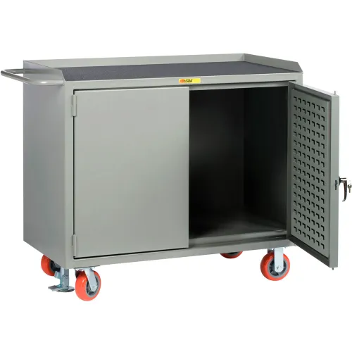 Little Giant Mobile Service Bench w/ Non Slip Vinyl Top & Louvered Door, 48"W x 24"D, Gray