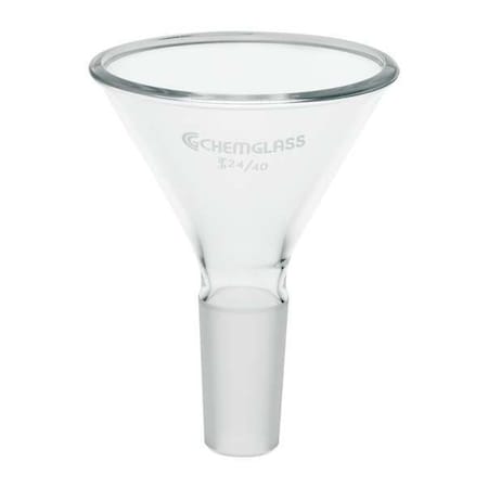 Powder Funnel, Laboratory Funnel Type Powder, Labware Basic Material Glass, Labware Height - English 6.69 in, Labware Height - Metric 170 mm, Labware Capacity - Metric 150 mm, Labware Body Material Type I Borosilicate Glass, Autoclavable Yes, Funnel Max OD 151.57 mm, Funnel Top ID 143 mm, Labware Body Color Clear, Stem Length - English 1.99 in, Stem Length - Metric 50.43 mm, Labware Clarity Transparent