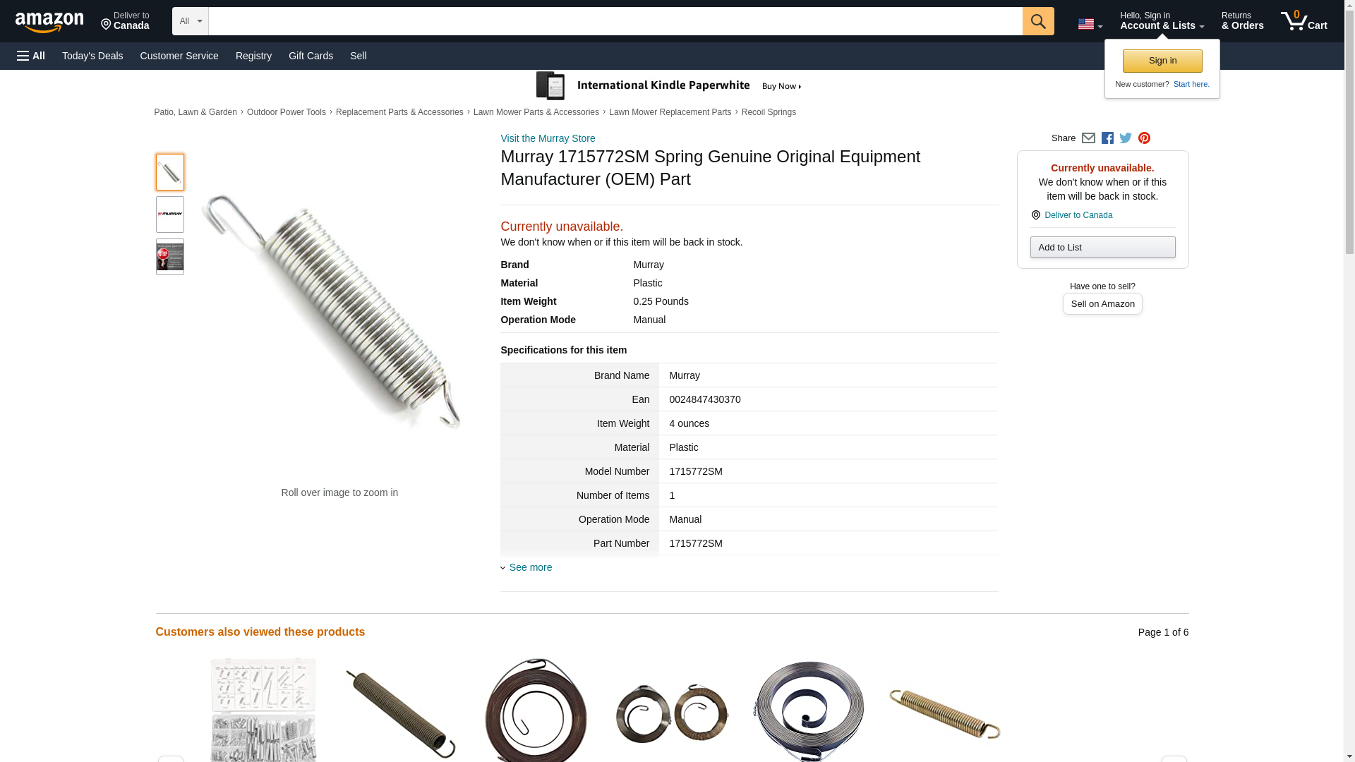 Murray Replacement Part # 1715772SM Spring-extn 0.987odx