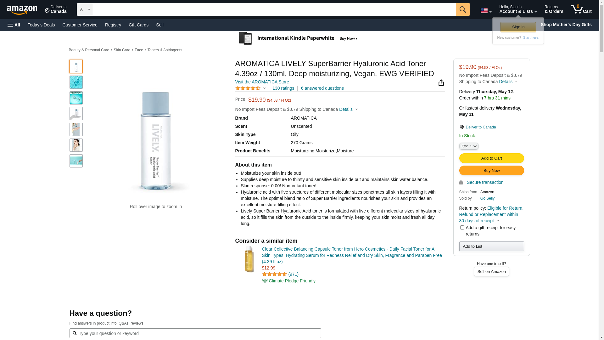 AROMATICA LIVELY SuperBarrier Hyaluronic Acid Toner 4.39oz / 130ml, Deep moisturizing, Vegan, EWG VERIFIED: Maxedbuy.com