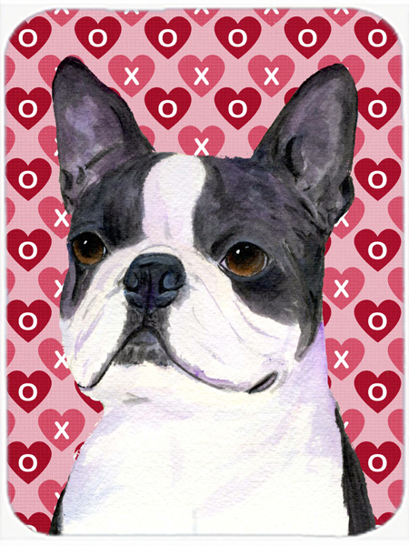 Boston Terrier Hearts Love and Valentines Day Glass Cutting Board- Large
