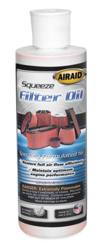 Air Filter Cleaner KitAir Filter Oil SqueezeAIRAID Performance Oil is used to re-oil a clean AIRAID premium air filer. AIRAID Performance Oil is applied after cleaning and forms an additional line of defense against dirt without limiting airflow.AIRAID Performance Oil is used to re-oil a clean AIRAID premium air filer. AIRAID Performance Oil is applied after cleaning and forms an additional line of defense against dirt without limiting airflow. Clean your AIRAID filter every 30,000 to 50,000 miles for normal driving, or more often for off-road and heavy dust conditions.Oil