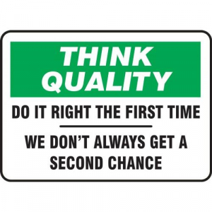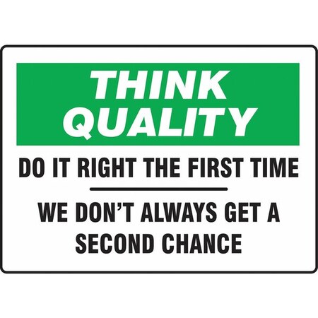 Accuform MQTL733VP Plastic Sign, Think Quality DO IT Right The First TIME WE Don't Always GET A Second", 7" Length x 10" Width x 0.055" Thickness, Green/Black on White