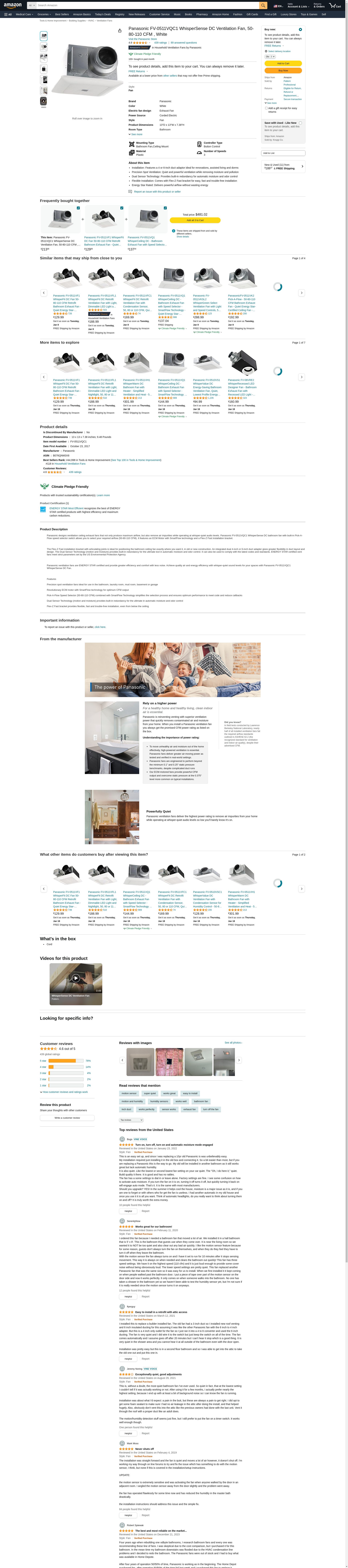Panasonic FV-0511VQC1 WhisperSense DC Ventilation Fan, 50-80-110 CFM , White