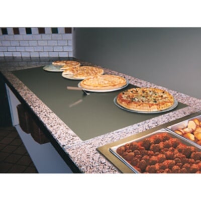 Heated shelf has an adjustable thermostat from +80°F to +181°F. Hardcoated aluminum top. Designed to install into existing countertop with a flush fit. Foil element and fiberglass insulation ensure even heat distribution. Easy to clean. Fits 603⁄4"Wx201⁄4"D cutout. 6' cord and plug included. 1220 watts. 120V. 50 lbs.