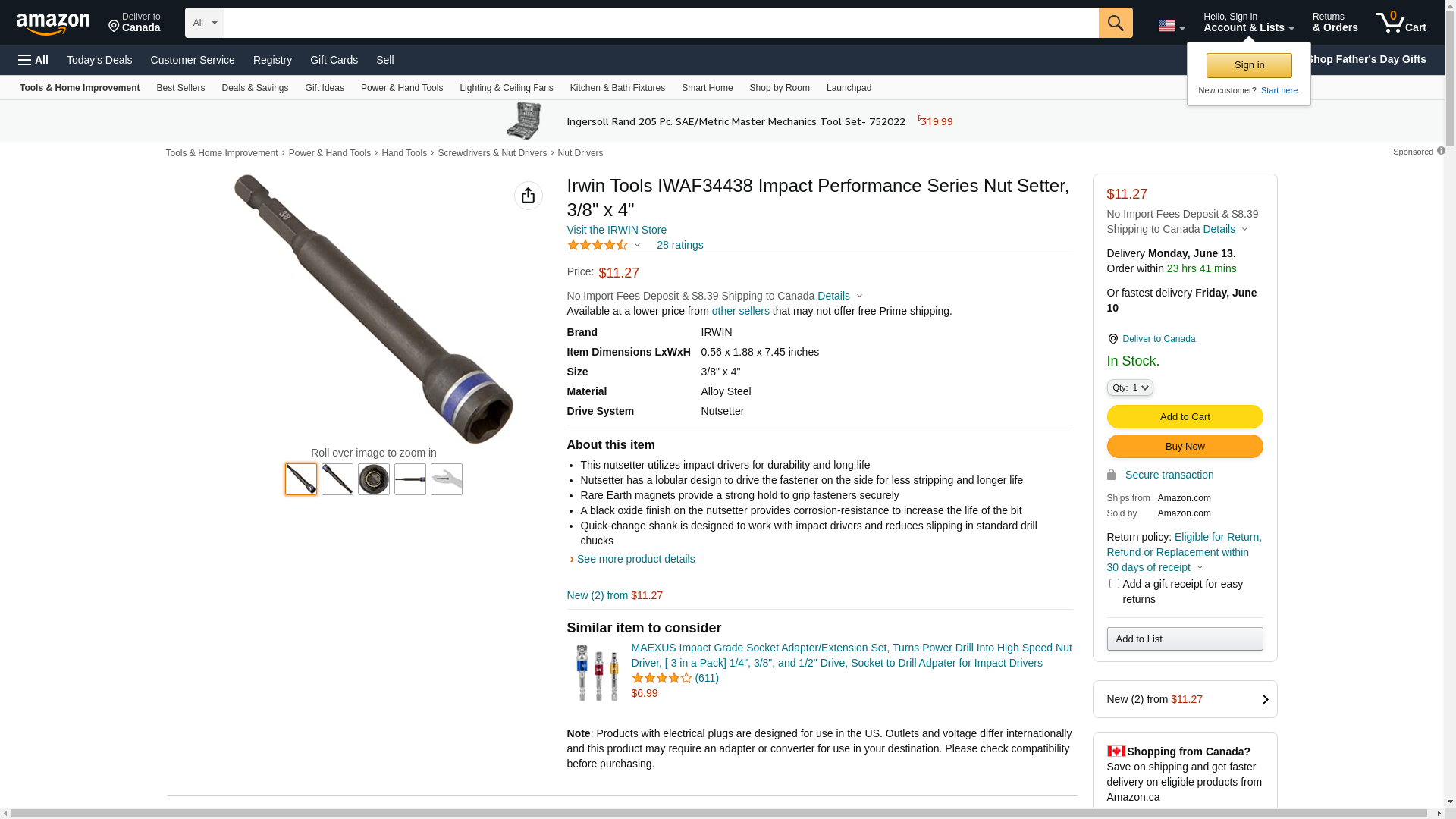 Irwin Tools IWAF34438 Impact Performance Series Nut Setter, 3/8" x 4"