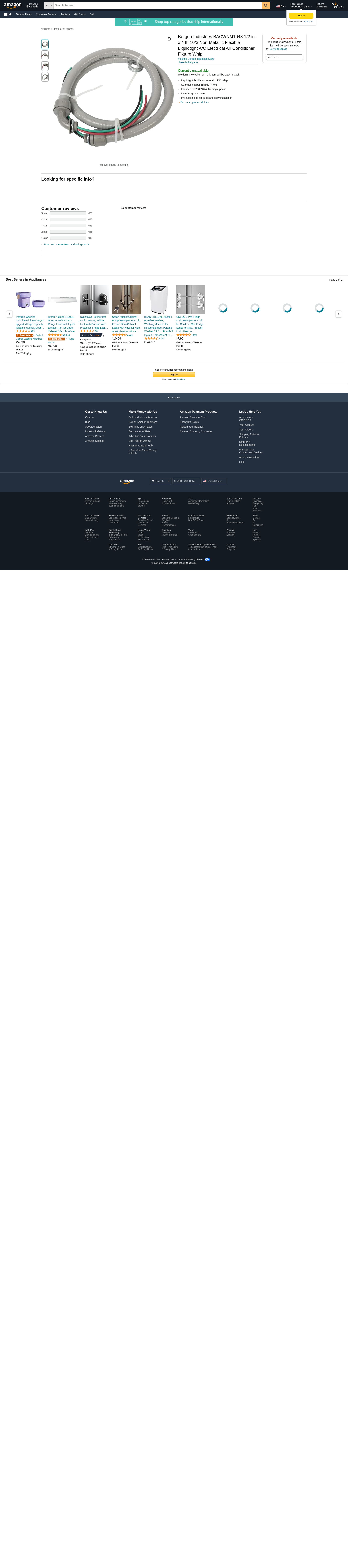 Bergen Industries BACWNM1043 1/2 in. x 4 ft. 10/3 Non-Metallic Flexible Liquidtight A/C Electrical Air Conditioner Fixture Whip