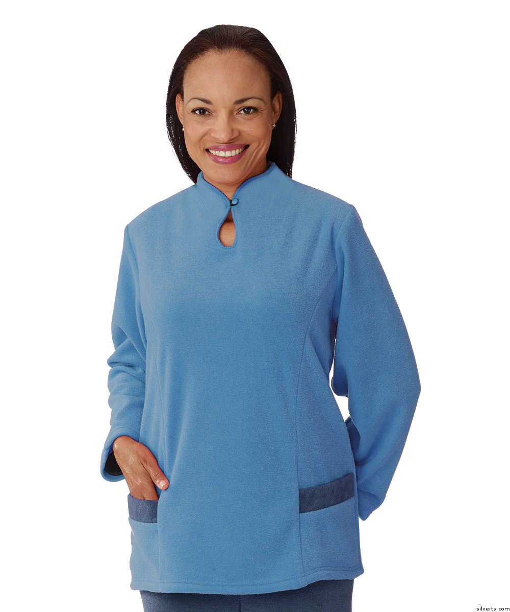 Silverts 245100103 Keyhole Neck Open Back Stylish Winter Weight Adaptive Top for Disabled Adults Womens - Azure, Lar