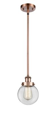 INNOVATIONS LIGHTING 916-1S-AC-G202-6-LED BALLSTON BEACON 1 LIGHT 6 INCH CLEAR GLASS MINI PENDANT, ANTIQUE COPPER, LED
