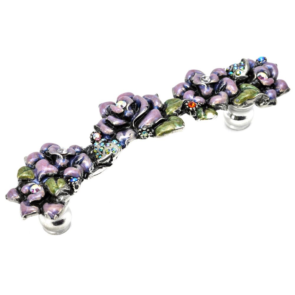 Oak Hollow In the Garden Collection - Rose 4" Centers Pull W/ Swarovski Ab Crystals & Soft Lavender Glaze in Cobblestone with Aquamarine by Carpe Diem Hardware - 2873-0-AQ | Knobs 4 Less