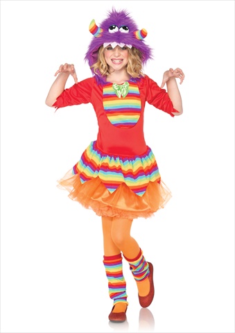 Leg Avenue Children's Rainbow Dress with Furry Monster Hood and Leg Warmers Costume