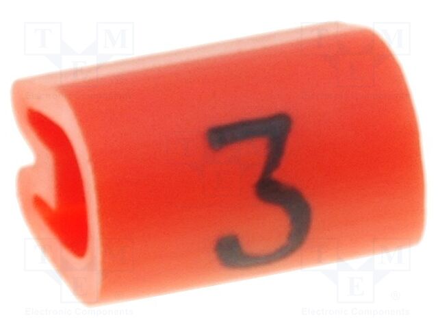 EU RoHS: Compliant ECCN (US): EAR99 Part Status: Active Marker Type: Pre-Marked Marker Color: Orange Minimum Cable Diameter (mm): 2 Maximum Cable Diameter (mm): 3.2 Legend: 3 Legend Color: Black Insertion: Before Termination Minimum Operating Temperature (°C): -45 Maximum Operating Temperature (°C): 70 Packaging: Box Product Length (mm): 4.5 Mounting: Push On