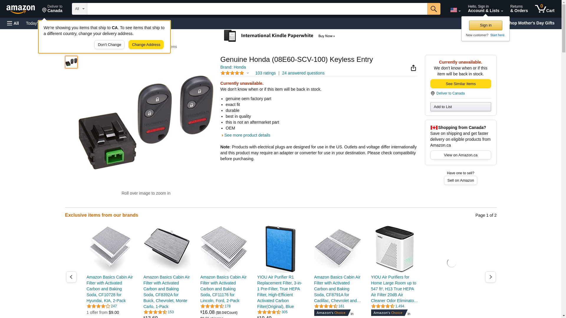 Genuine Honda (08E60-SCV-100) Keyless Entry. Element '03-06. Genuine OEM. Direct fit. Genuine Honda Parts 08E60-SCV-1...