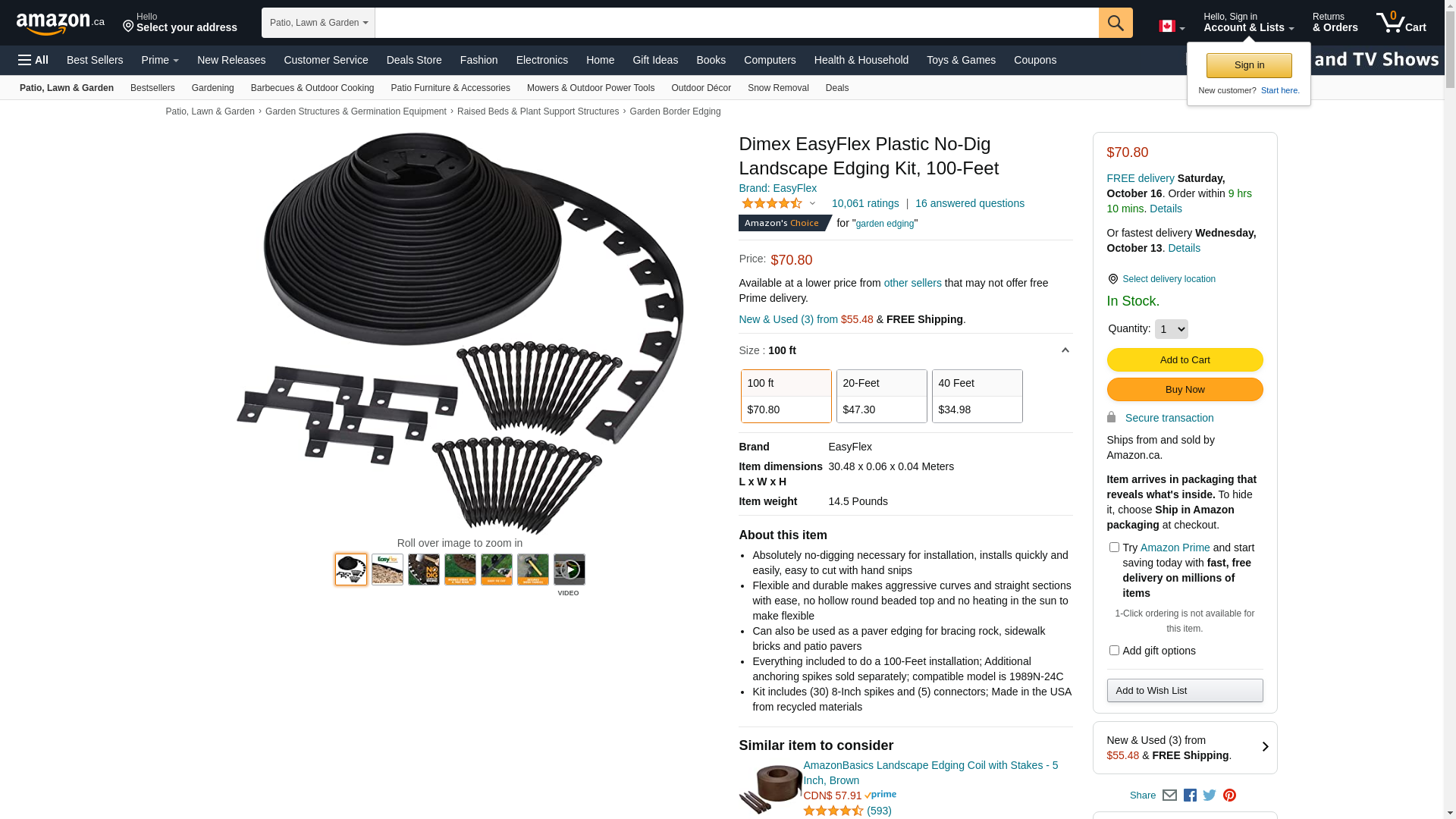 Plastic No-Dig Landscape Edging Kit, 100-Feet (3000-100C)