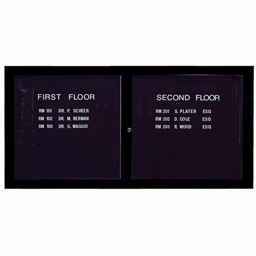 Aarco ADC3672IBK 36" x 72" Enclosed Hinged Locking 2 Door Powder Coated Black Aluminum Indoor Lighted Message Center with Black Letter Board