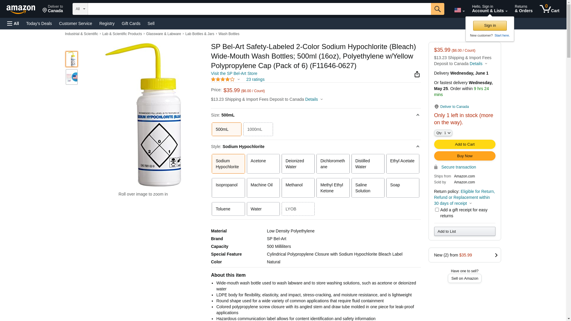 | Feature | Price For: Each Cap Material: Polypropylene Diameter: 53mm Wash Bottle Style: Standard Spout Item: Wash Bottle Bottle Material: LDPE Mouth: Wide Imprinting: Sodium Hypochlorite (Bleach) Opacity: Opaque Venting: Non-Vented Cap Color: Yellow Color: Clear Capacity: 500mL Country of Origin (subject to change): United States |