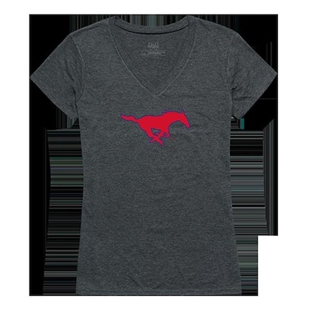 SMU Southern Methodist Mustangs NCAA Women's Cinder Tee V Neck Shirts - Charcoal, Medium