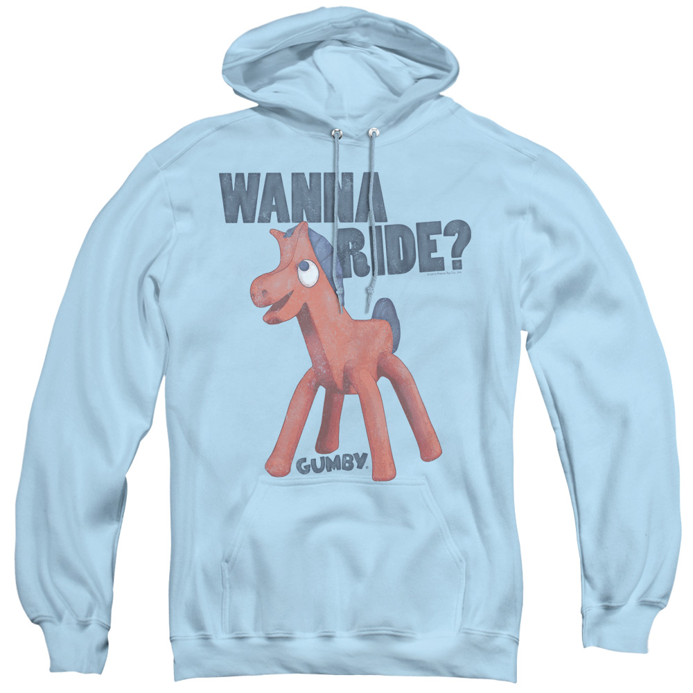Trevco GMB115-AFTH-1 Gumby & Wanna Ride Adult Pull-Over Hoodie Light Blue - Small