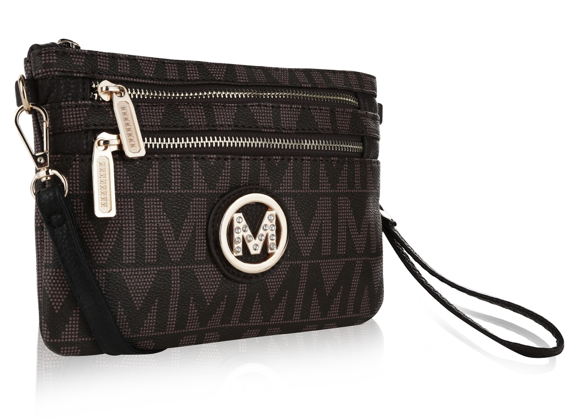 MKF Collection MKF-BM3330CH Monaco Milan M Signature Crossbody Wristlet, Chocolate