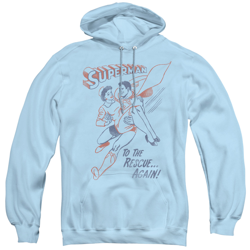 Trevco SM1946-AFTH-6 Superman & To the Rescue Adult Pull Over Hoodie, Light Blue - 3X