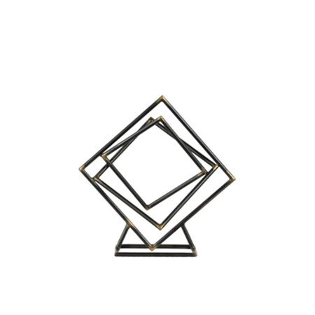Small Metal Tangled Squares Abstract Sculpture on Square Base, Gunmetal Gray