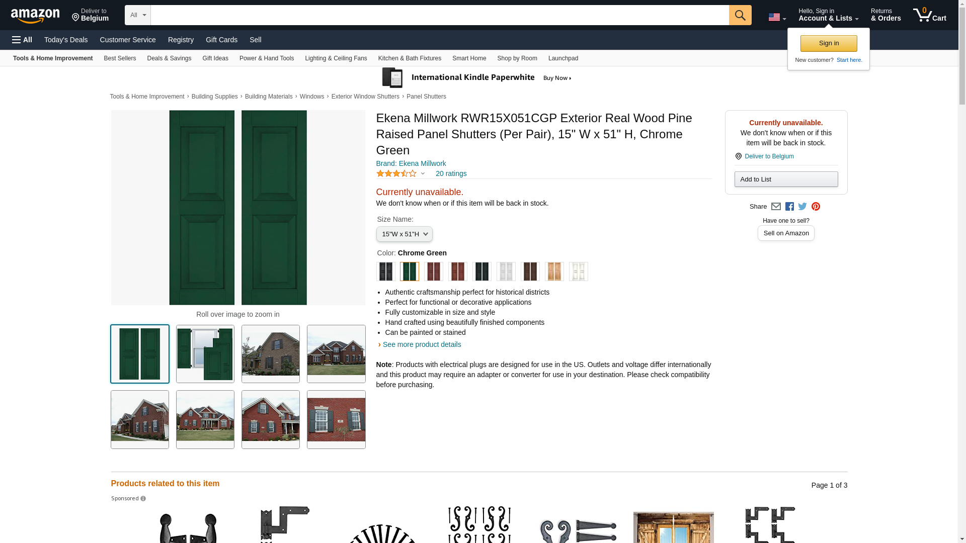 Ekena Millwork RWR15X051CGP Exterior Real Wood Pine Raised Panel Shutters (Per Pair), 15" W x 51" H, Chrome Green