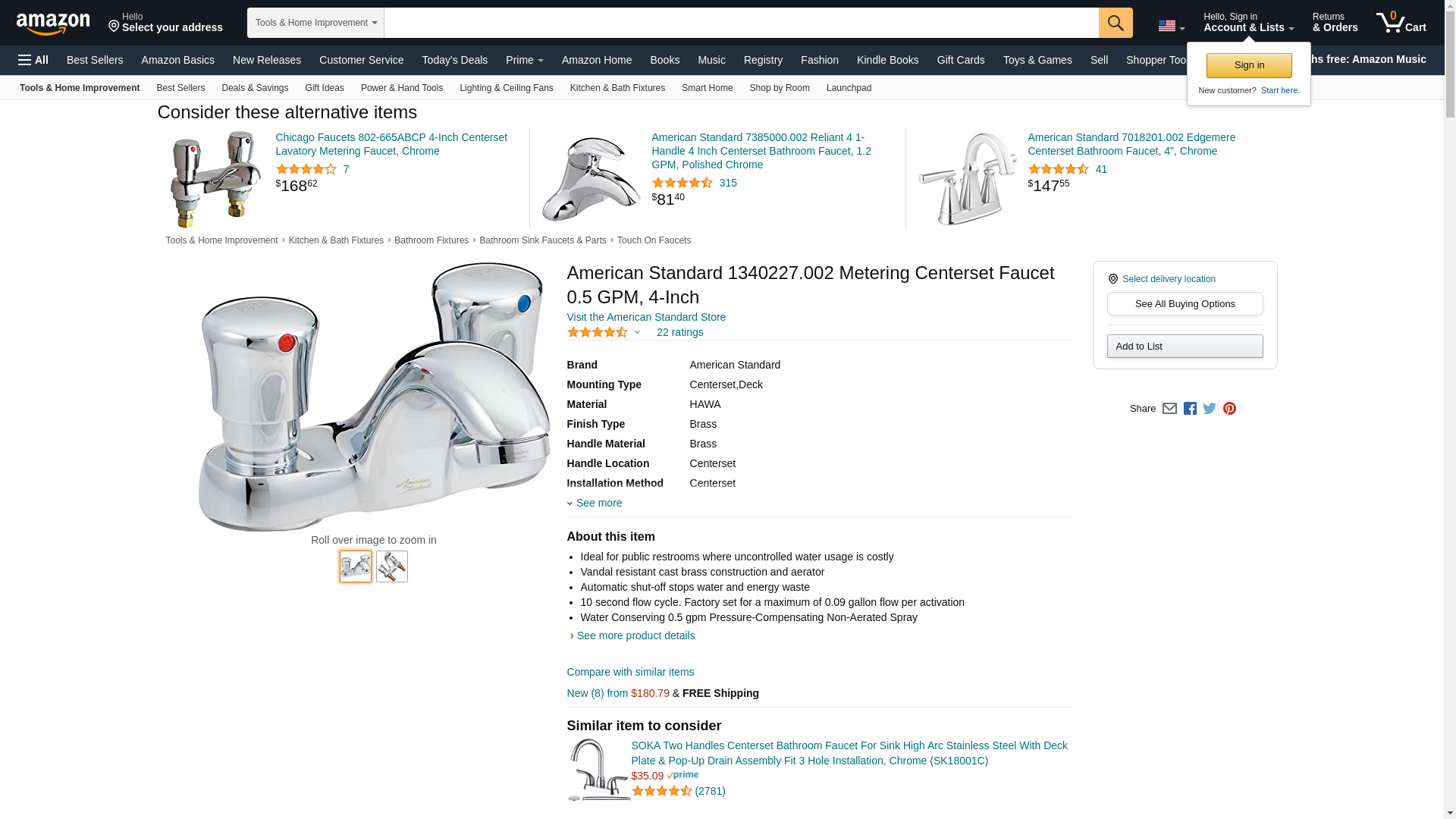 American Standard 1340227.002 Metering Centerset Faucet 0.5 GPM, 4-Inch, Chrome