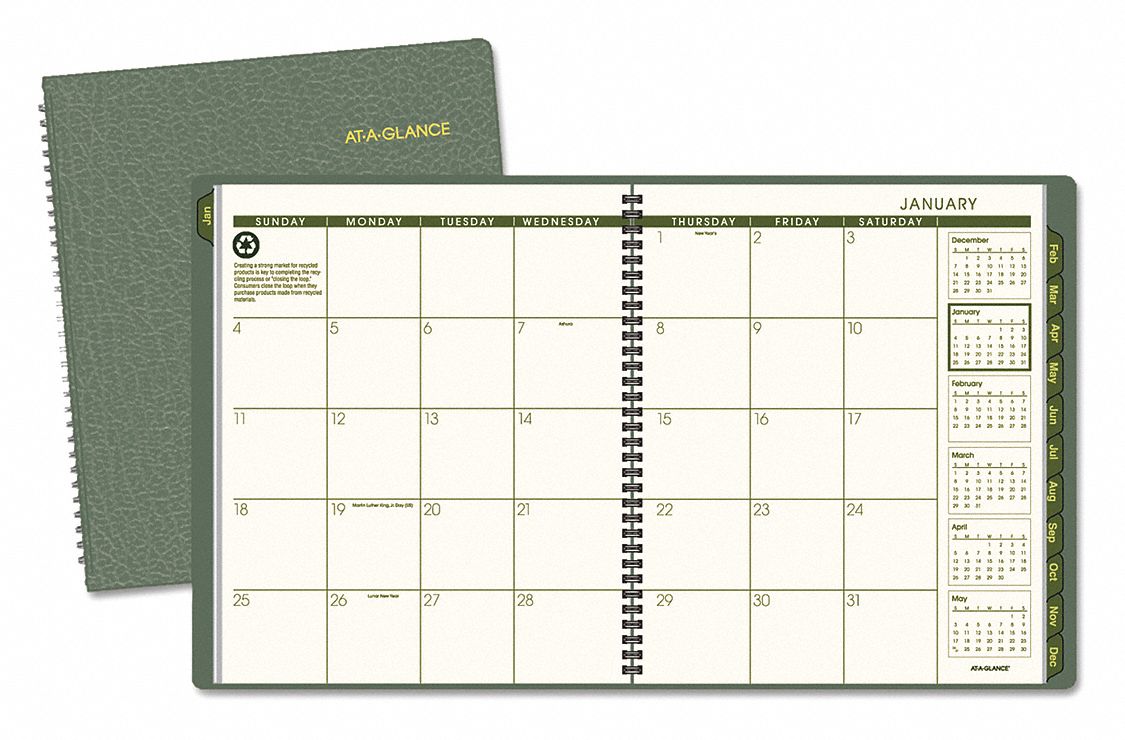 AT-A-GLANCE, 10 x 11 in Sheet Size, One Month Per Two-Page Spread, Planner - 52DN80|70260G6009 - Grainger