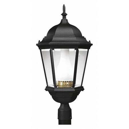 Cast post lantern with clear beveled glass. 120-277V HPF electronic ballast. Bulbs Included: FALSE Product Weight: 11.4 Product Color: Black Lamp Wattage: 26, 32, or 42 Glass: Clear beveled Weight: 11.4 Notes: Fits 3 in. post (sold separately)