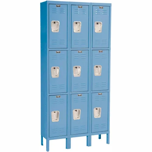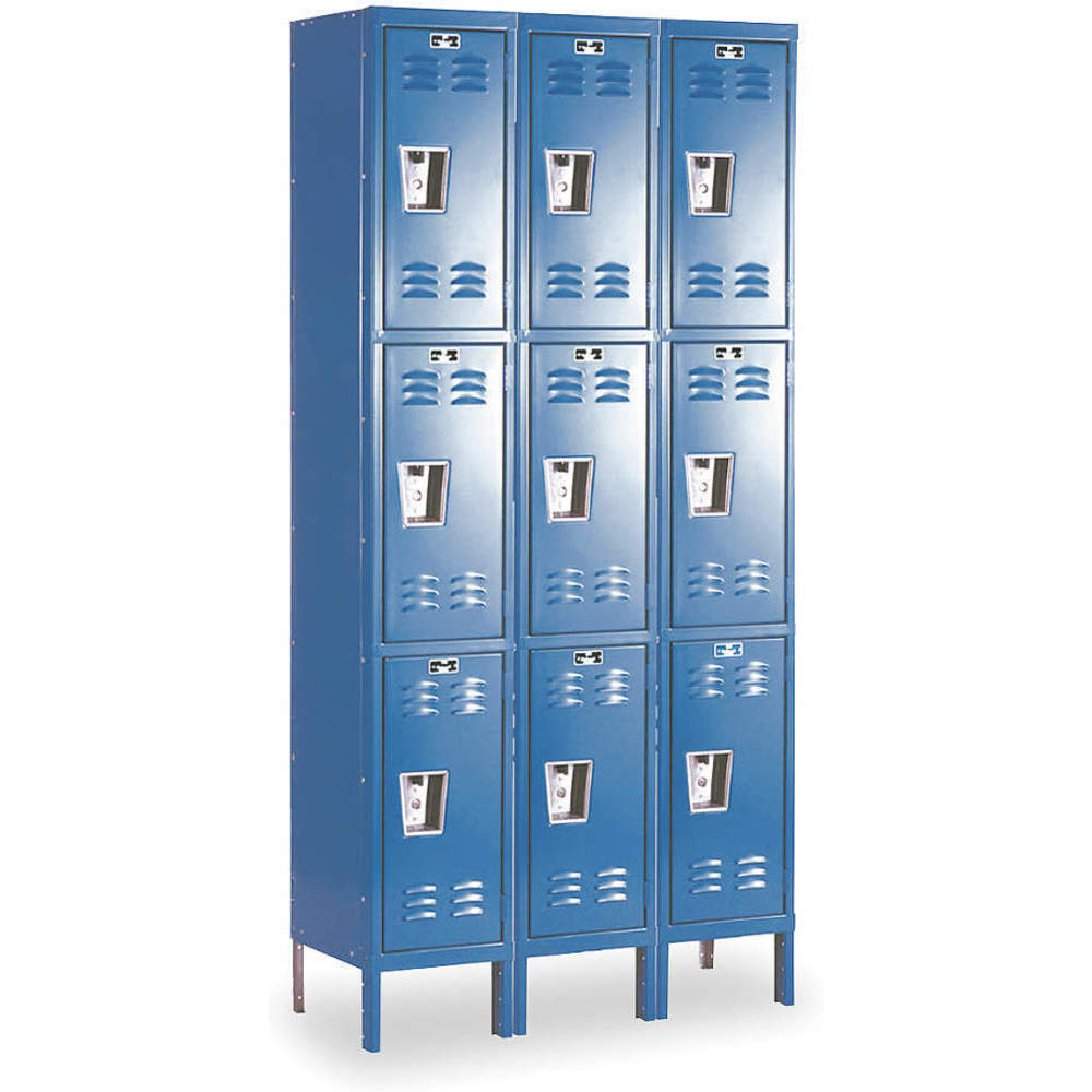Hallowell Premium Locker Triple Tier 3 Wide (Assembled) U32X8-3A Dimensions (W x D x H): 12" x 12" x 72", Color: Marine Blue