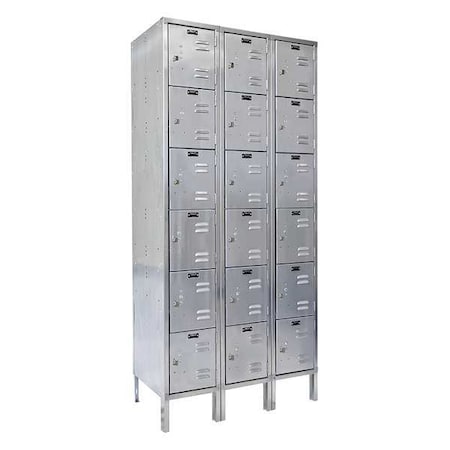 Hallowell USS3288-6A 304 Stainless Steel KD Locker, Assembled, 3-Wide Grouping, 6 Tier, 12" Opening Height, 78" Frame Height, 12" Width x 18" Depth