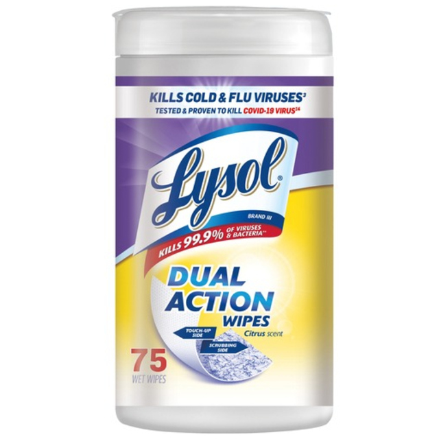 Lysol Dual Action Disinfecting Wipes, Citrus, 75 ct (Pack of 6)