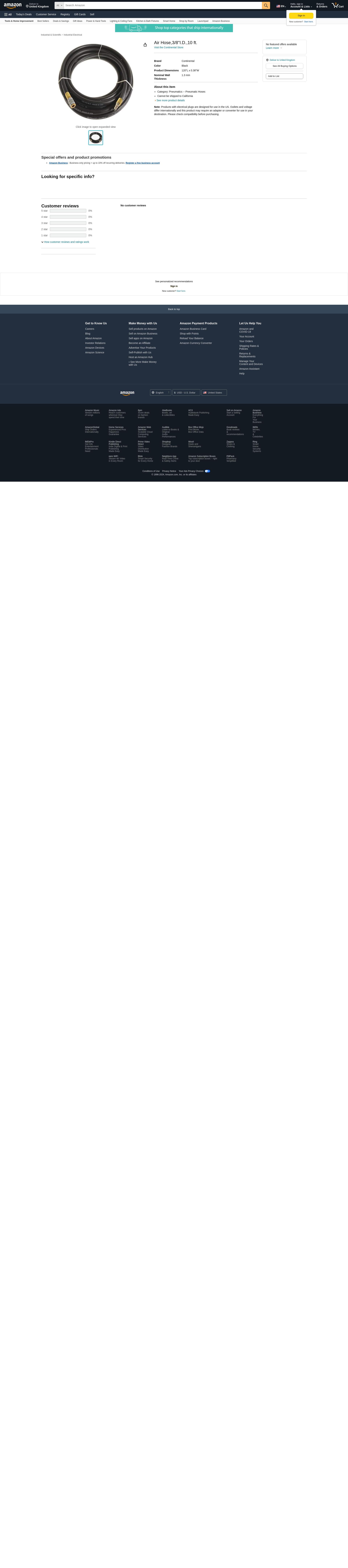 Air Hose,3/8"I.D.,10 ft.