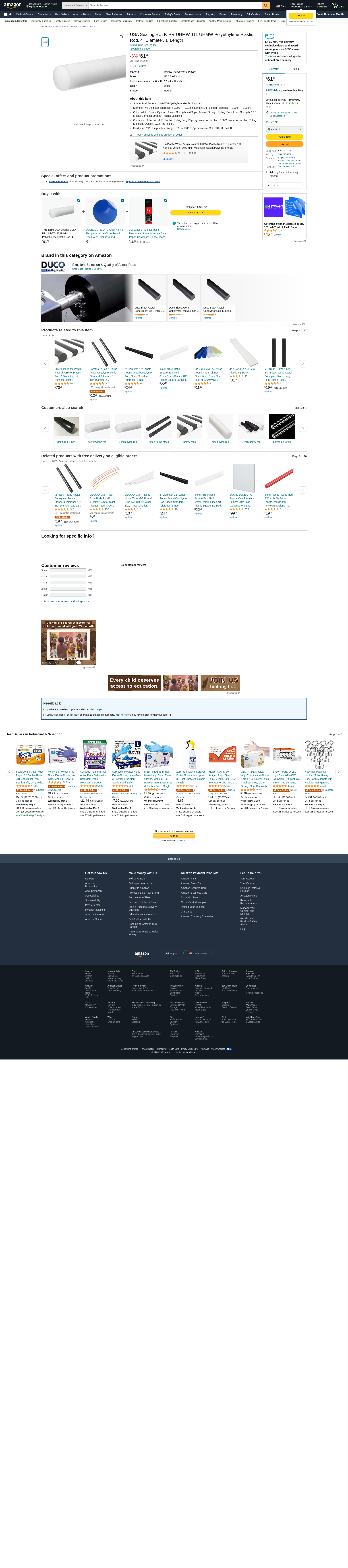 - Shape: Rod; Material: UHMW Polyethylene; Grade: Standard