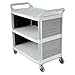 The Rubbermaid Commercial Xtra Utility Cart is ideal for providing table service or similar tasks. With three shelves and an enclosed design, it is easy to create nice displays for customers. Each shelf has e a 100-lb. capacity, while 4-inch swivel casters make it easy to maneuver.