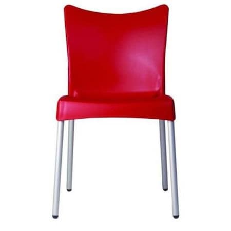 Juliette dining chair. Made from commercial grade resin with rust free aluminum legs. Great for outdoor spaces, patios and decks. Used by restaurants, cafes and hotels.