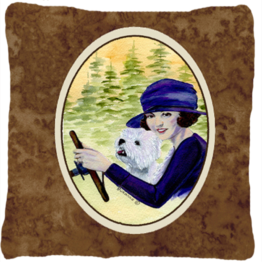 Carolines Treasures SS8532PW1414 Woman driving with her Westie Decorative Fabric Pillow - 14 x 14 in.