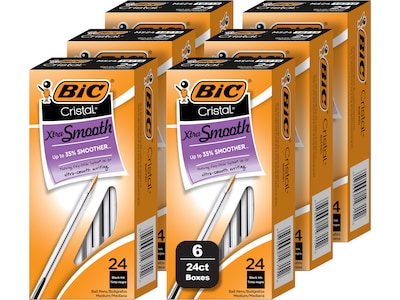 BIC Cristal Xtra Smooth Ballpoint Pen, Medium Point, Black Ink, 24/Box, 6 Boxes/Pack (MS144E-BLK) | Quill.com