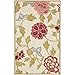 - This rug features an ivory background, and displays a stunning floral pattern in shades of green, pink, red, and blue