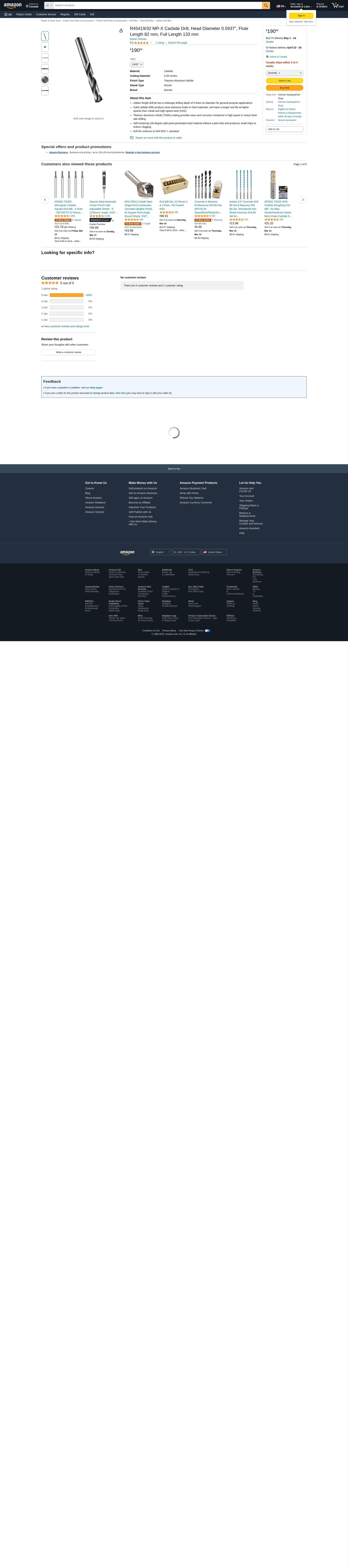 Dormer R45419/32 MP-X Carbide Drill, Head Diameter 0.5937", Flute Length 82 mm, Full Length 133 mm