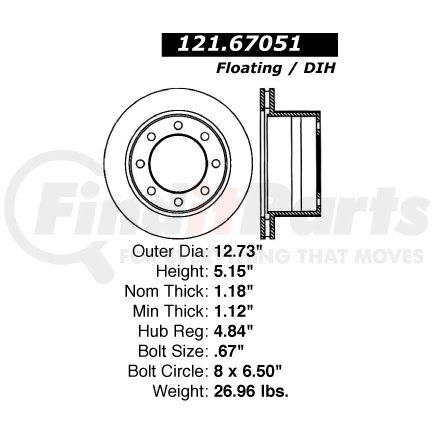 Centric Parts 121.67051 C-Tek Standard Brake Rotor