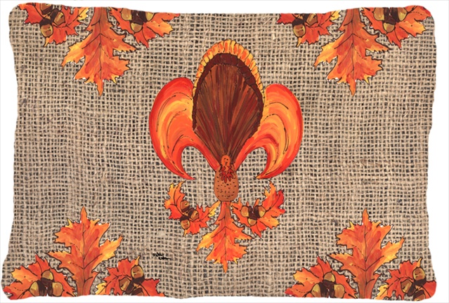 Carolines Treasures 8744PW1216 Thanksgiving Turkey Fleur de lis Indoor & Outdoor Decorative Fabric Pillow - 12 x 16 in.