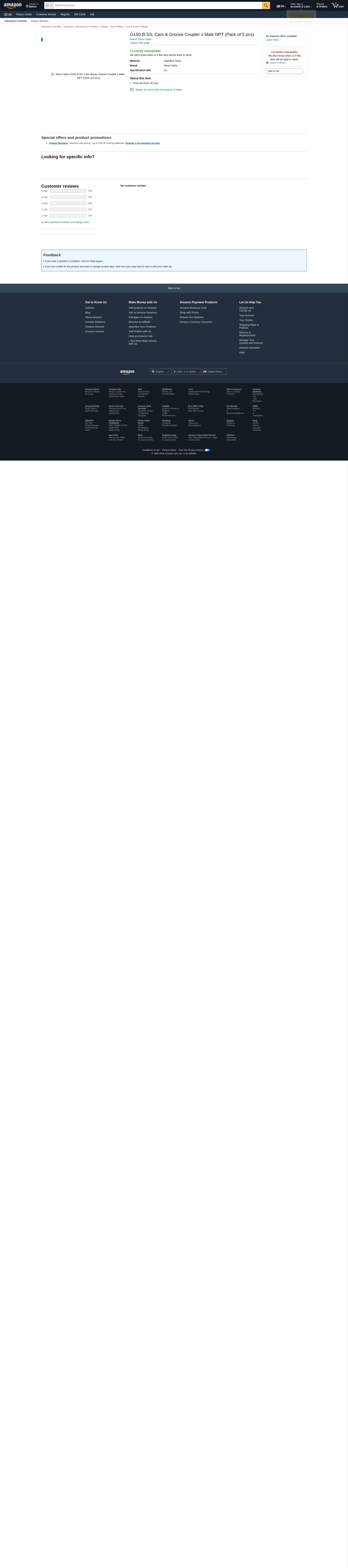 Dixon Valve G150-B-SS, Cam & Groove Coupler x Male NPT (Pack of 5 pcs)