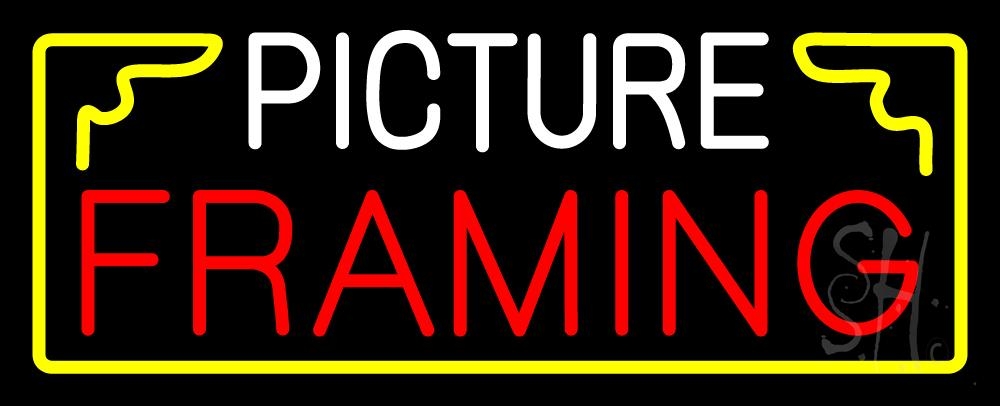 The Sign Store N105-6620 13 x 32 in. Picture Framing with Frame Logo Neon Sign - Yellow, Red & White