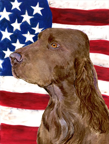 Carolines Treasures SS4010CHF 28 x 40 in. USA American Flag with Field Spaniel House Size Canvas Flag