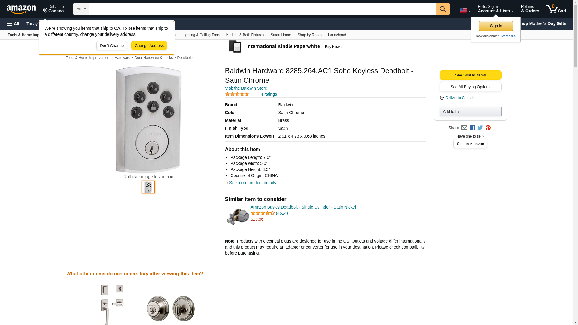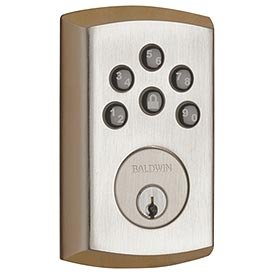 Baldwin Baldwin Soho Electronic Deadbolt - 8285 Features: - Easily Installs in Minutes with standard Screwdriver - Fits Standard Tubular Door Prep - No Hard Wiring Required - 2 Customizable User Codes with Easy Add & Delete - 4 to 8 Digit Codes - One Touch Locking - Back-Lit Keypad for Increased Visibility - Incorrect Code Lockout Feature - Customizable Features --Automatic Door Locking after 30 Seconds - Door Locked / Unlocked led indicator --Audible beep for activation - 4 AA Batteries (not included) - Low Battery LED Indicator - Tapered Deadbolt Design - Protective Coated Keypad Preventing Wear & Discoloration - Automatic Handing Feature - Solid Forged Brass Trim Specifications: Function: Single Cylinder Deadbolt Door Prep: 2 1â„8" Bore, 1" Edge Bore Backset: Adjustable from 2 3â„8" to 2 3â„4" Door Thickness: 1.75" to 2.00" Cylinder: 5-Pin C-Keyway Faceplate: 1" Square Corner Striker: Square Corner with reinforcing plate Bolt: Brass, tapered w/ security pin Door Handing: Automatic Handing 8285 AC1 Keyless Access","Keyless Access > Shop Keyless","Keyless Access > Shop Keyless > Keypads","Keyless Access > Shop Keyless By Style","Keyless Access > Shop Keyless > Electronic Locks","Keyless Access > Shop Keyless By Style > Key Pad